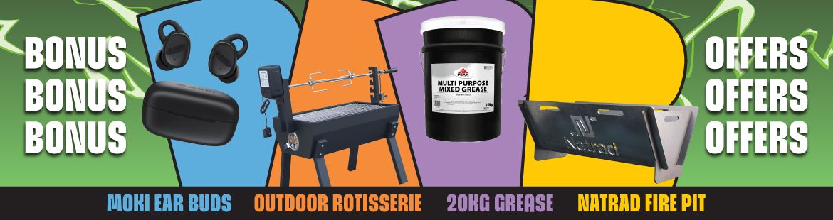 MARCH MANIA Specials are only valid for orders placed Thursday 19 MAR 2026. Prices ex GST & Freight. Allow up to 3 weeks for delivery of bonus items and non-stocked parts. One bonus per offer per account. Some stock limitations may apply. Free local freight on orders over $200 (Regional freight charges apply). Wholesale accounts excluded. E&OE. Offer #1: Spend over $500 on Adrad Coolant & Treatments in the catalogue to receive a pair of Moki Ear Buds (page 3 only). Offer #2: Spend $600 or more on VALEO & DENSO Wipers, Globes & Spark Plugs in the catalogue and receive a Bonus Outdoor Rotisserie (pages 4-5 only). Offer #3: Receive a BONUS 20KG SYNTHETIC GREASE (PKGXST020) when you spend over $900 on Catalogued Consumables & Tools (pages 14-23 only). Offer #4: Get a Natrad Fire Pit when you spend over $500 on Camping & Outdoor products (page 24 only) *OZtrail awnings will incur an additional $30 freight charge per item.